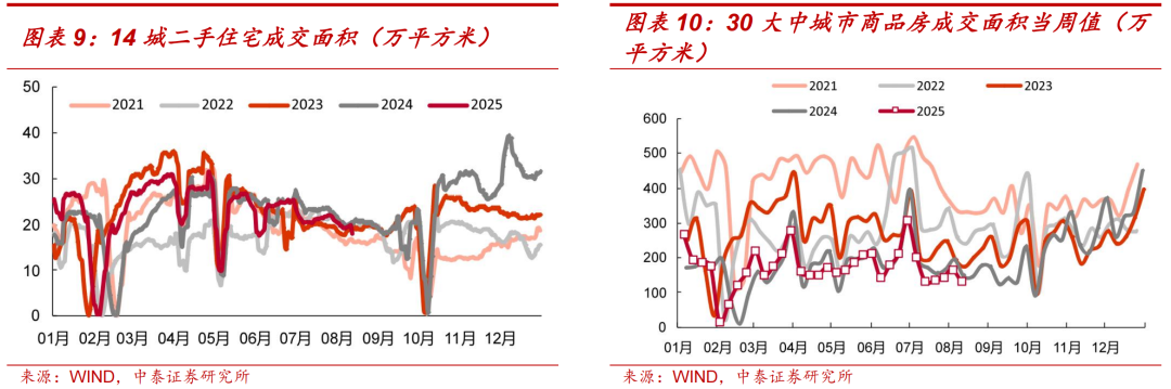 ◾1)居民部门短贷、中长贷新增均位于近年季节性低位。短贷方面,消费前置发力后表现动能回落,7月居民加杠杆意愿偏弱,数据公布前《个人消费贷款财政贴息政策实施方案》出台,也旨在提振消费需求;中长贷方面,7月新房、二手房成交面积环比6月和同比去年7月均表现下行,其中新房跌幅更为明显,7月30大中城市商品房成交面积环比前月下行30.1%,较去年同期下行18.6%。