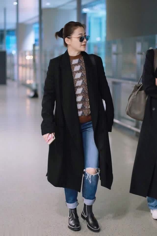 梅婷的身材并不是那种非常苗条的女人,稍微有点点微胖,更有一种珠圆玉润之美。所以在服装的选择上,他也是会更加适合一些深色系的搭配。而稍微修身的款式,则是更加时髦的风格。这件黑色大衣,利用了过膝的长度,更加宽松的版型,加上翻领的元素设计,呈现出一种美丽优雅姿态。平直的肩部线条,在小垫肩的元素修饰下,更加明朗地呈现出来。